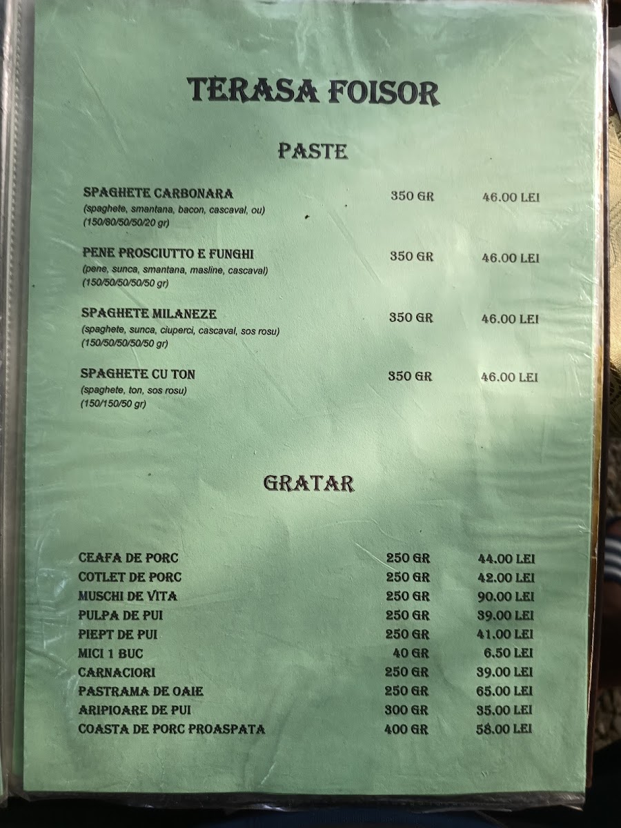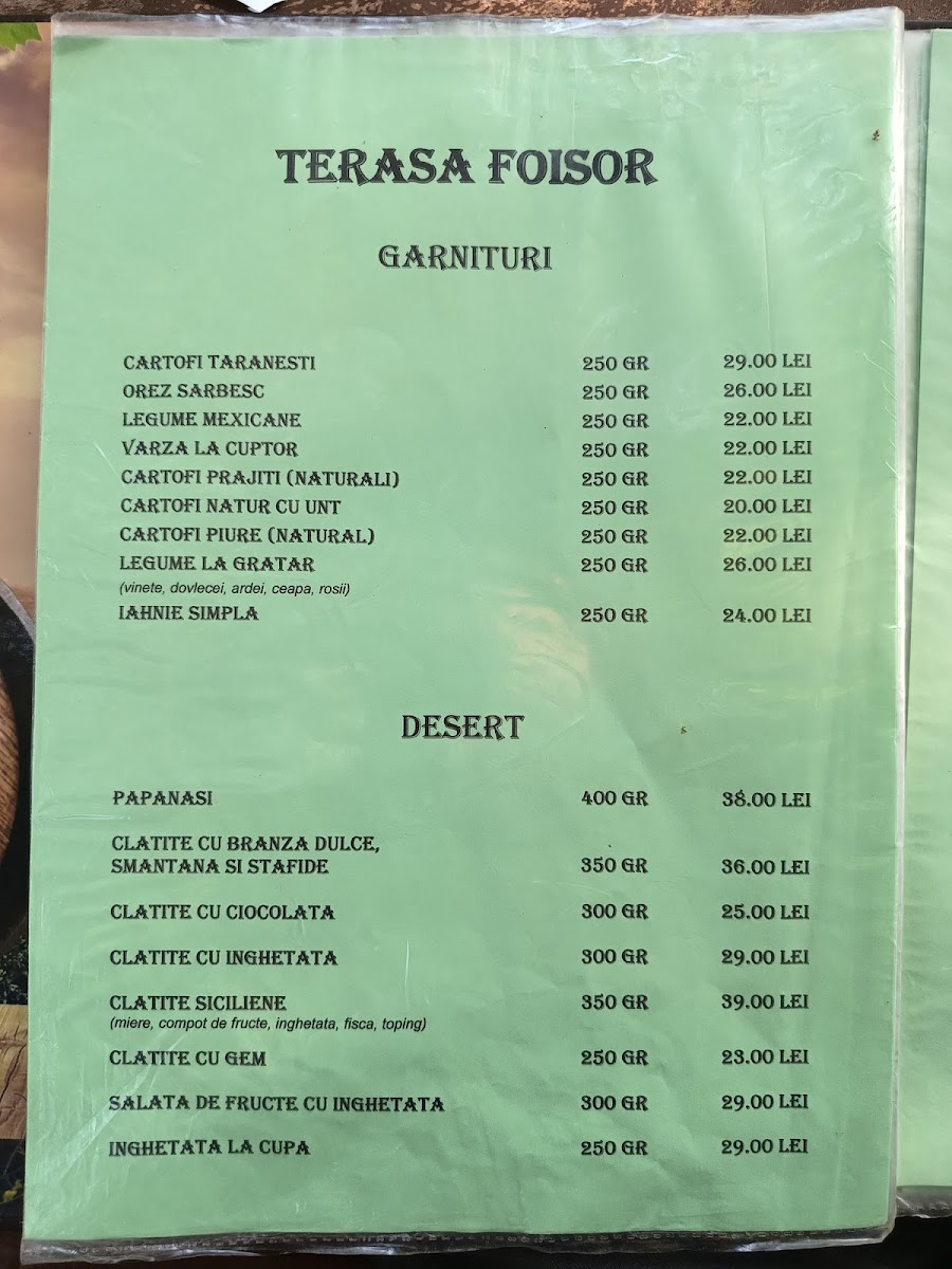 Amid the lush greenery surrounding the venue, you'll experience a delightful mix of nostalgia with a backdrop of classic Romanian pop music. At Terasa Foișor, your culinary adventure awaits, where each dish is a celebration of local tradition and hearty satisfaction.